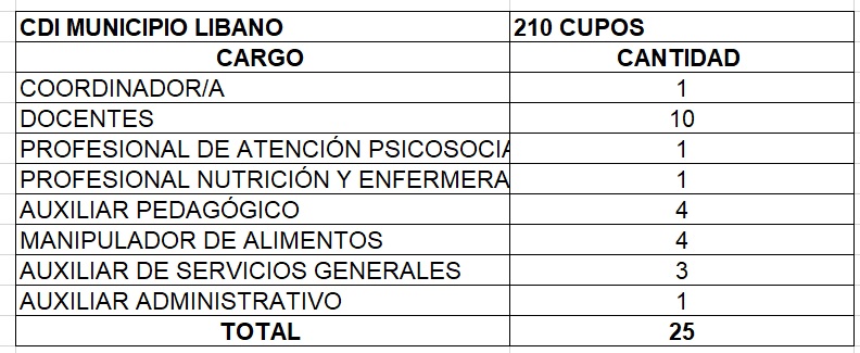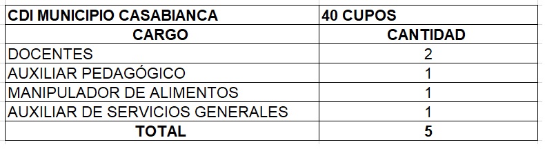 La Corporación para la Gestión del Desarrollo Humano Filántropos, invita a todos interesados en hacer parte del talento humano para el programa CENTRO DE DESARROLLO INFANTIL CDI EN LOS MUNICIPIO DE LIBANO, VILLAHERMOSA, MURILLO Y CASABIANCA – DEL CENTRO ZONAL LIBANO DEL INSTITUTO COLOMBIANO DE BIENESTAR FAMILIAR así: